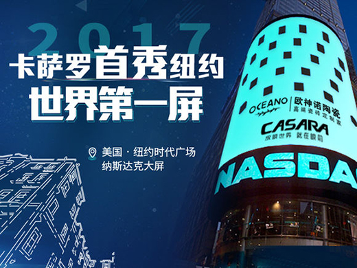 除此之外,欧神诺常年与《Top装潢世界》、《时尚家居》等知名家居杂志进行合作,更两次荣登纽约时代广场纳斯达克大屏,向全世界展示中国高端瓷砖的独特魅力。