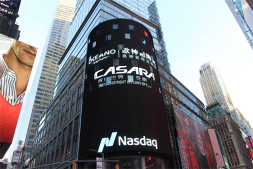 欧神诺二度荣登纳斯达克大屏
