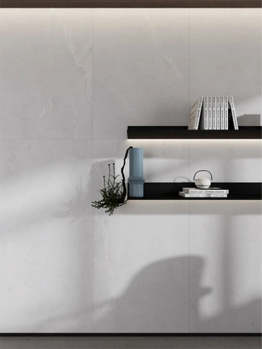 另外,复合轻纹砖还是3%-15%的低饱和度色彩瓷砖,它解决了家具软装与瓷砖色彩的冲突问题。