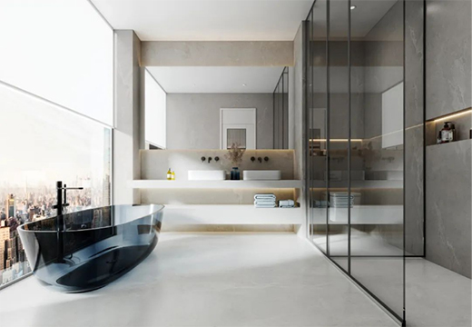 从2021开始,箭牌复合轻纹砖就专门推出天空之境系列岩板,和箭牌卫浴一起打造全岩+全卫一体化空间。