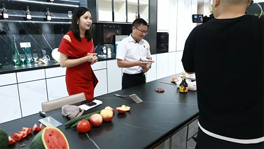 云逛王者总部展厅环节为大家做了产品介绍和深度解析,如曜影·焕系列、曜影·嫚系列、曜影·奕系列、雅岩系列、天境系列、王者岩板系列这些有颜有质的产品,从规格、颜色、风格、质感、实用性和空间应用等方面阐述了产品优势,让大家感受到了王者质美产品的魅力。