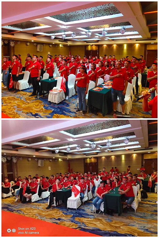 当天下午,全体特训人员从各个战区返回宿迁江山大酒店,召开此次特训及导购技能实战的总结会。据了解,此次特训有88位学员完成了各项严格的特训内容,顺利结业,商学院副院长林小龙亲自给学员颁发放结业证书。同时,林院长还组织全国各地的经销商开展视频会议,现场启动7月全国联动活动。