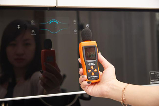 最后我们针对油烟机的噪音进行了测试。手持10公分位置测试油烟机的噪音值仅为73.4dB,对于油压机来说这个数据可以说是非常理想。