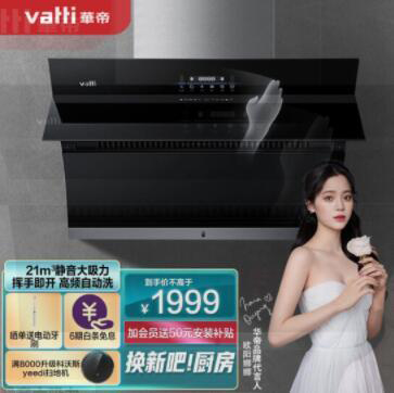华帝(VATTI)抽油烟机 侧吸式 家用静音吸油烟机 21立方大吸力 智能挥手智控 高频自动清洗 以旧换新 i11135
