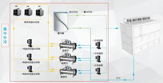 集中式补冷为间接蒸发冷AHU+磁悬浮离心机水系统相结合的联合供冷模式,充分利用不同机组的优势互补,从而实现数据中心最优的PUE解决方案。
