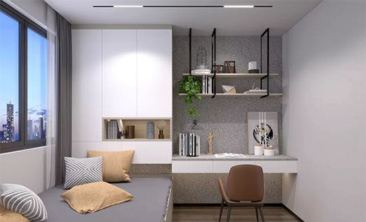 大片相同的色系萦绕在次卧区域,依旧是简洁舒适的留白设计。