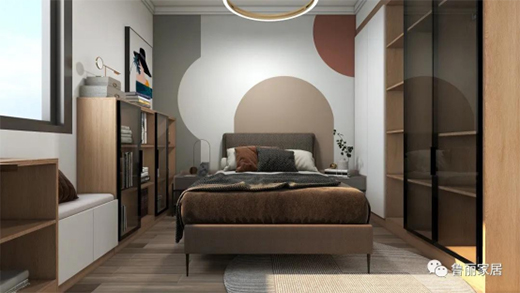 高级的质感结合华丽的材质,为这一室设计增添了更多光彩。一门到顶的衣柜与玻璃门相结合可谓质感十足,实用中透露出高级;收纳柜搭配玻璃门,透过灯光的折射,可以将收纳的书籍、艺术品一览无余,让卧室也可以成为一个极具艺术感和人文性的空间。