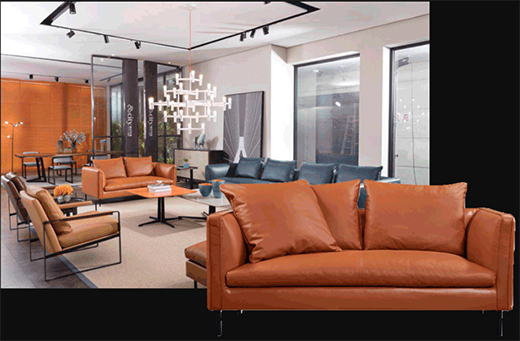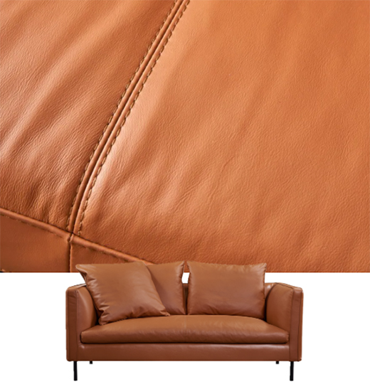 兰斯沙发的受力面以及人体接触的部分采用真皮,真皮精选爱马仕橙色,为客厅注入一股鲜活生命力。采用金属高脚设计,承重有力,便于日常清扫。
