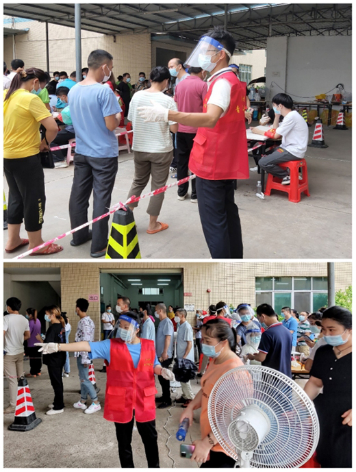 近期,广州疫情势态严峻,为了进一步强化新冠肺炎疫情防控管控措施,保障人民群众健康安全,广州政府持续推进接种疫苗和核酸检测工作。2021年6月24日,在广州白云区钟落潭政府的统一安排部署下,合生雅居积极组织志愿者团队支援社区医院顺利开展核酸检测工作。