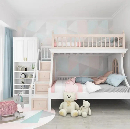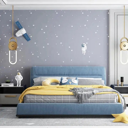 儿童房墙面记得一定不要装修的太花哨,过于艳丽的颜色会让孩子的情绪更为浮躁。所以儿童房的墙面在配色的时候,要充分根据孩子的视角,掌握适当的程度标准。