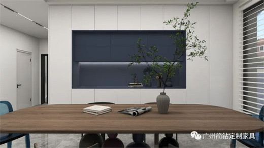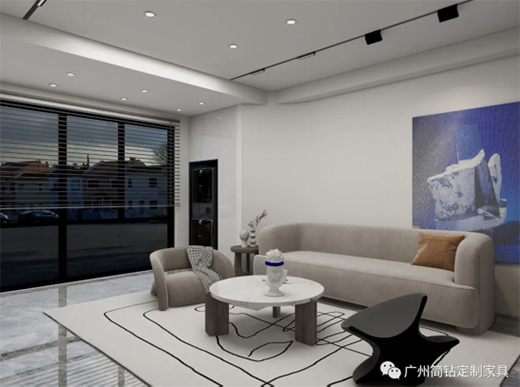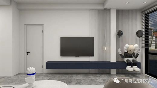 简钻最近交付的广东中山某小区全屋定制是最佳例子。业主是一对90后的新婚夫妻,房屋为90平方米。业主要求收纳强,节约空间,走极简风格。简钻设计师根据业主的需求,量身定制,科学设计。客厅采用灰白黑色系搭配,经典不过时,简约又时尚。电视机下面是悬空式柜具,尽显时髦,装饰效果极佳。转角两侧设计储物柜,显得空间宽敞,便于收纳衣物杂物。实用与颜值并存的新房子,业主感到非常满意,也感谢简钻能够如期交付,到明年春天便可以入住新房了。