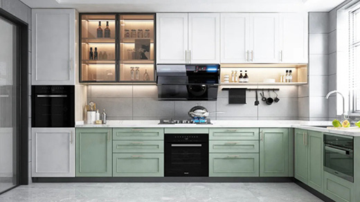 客来福多款厨房设计很好地融合了中厨和西厨,既可以实现爆炒煎炸和烧煮,还可以制作精致的西式冷餐和醇香咖啡,满足全家人的口味。