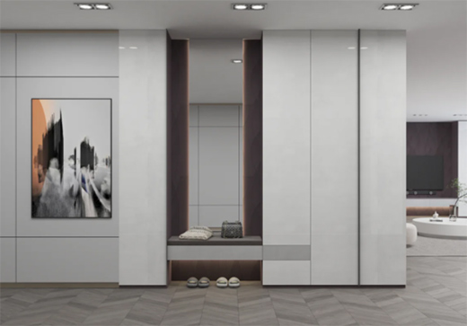 海尔全屋家居亮光云海纹理PET门板,选用婴儿奶瓶同款材料,细腻如肌肤般触感。2700mm一门到顶超高柜,搭配一体式一字型把手,让每一次开合都充满惊喜。