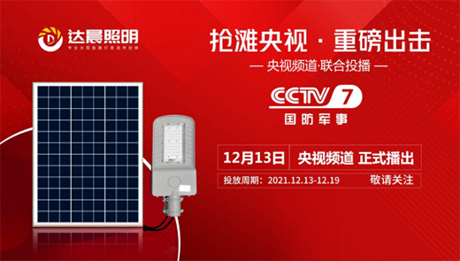 - 达晨照明太阳能路灯将荣登CCTV展播,展现非凡魅力 - 2021/12/09