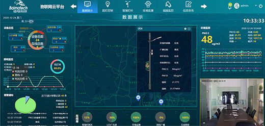 智慧路灯搭载微型一体气象站,对城市街道环境数据进行实时采集上传管理平台,并可显示在灯杆显示屏上,各种环境变量数据可根据实际需要需求进行配置。在应对灾害性天气,通过各种环境数据采集分析,可提前预警,便于灾害管理决策。
