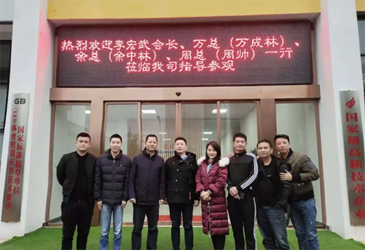 12月4日,湖南省体育设施建设协会李宏武会长与协会领导万成林、余中林、周帅等一行莅临七大洲湖南“智造中心”,七大洲总经理张飞虎等高管热情接待。