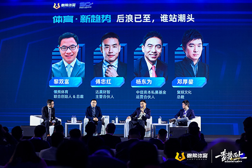 在“后浪已至,谁站潮头”论坛中,达晨财智主管合伙人傅忠红、中信资本私募基金运营合伙人杨东为、复娱文化总裁邓厚鋆探讨资本市场的趋势。2020年体育投融资市场情况似乎并没有那么糟糕,资本并没有大规模离场,只是流向更为集中。