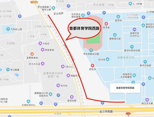 首都体育学院西路向南到北三环西路附近,能到达地铁13号线大钟寺站,向北到罗庄南路,全长约460米。不少市民表示,这条路到北三环坐公交车、坐地铁都很方便,但就是因为没有路灯,很多人都不敢走。