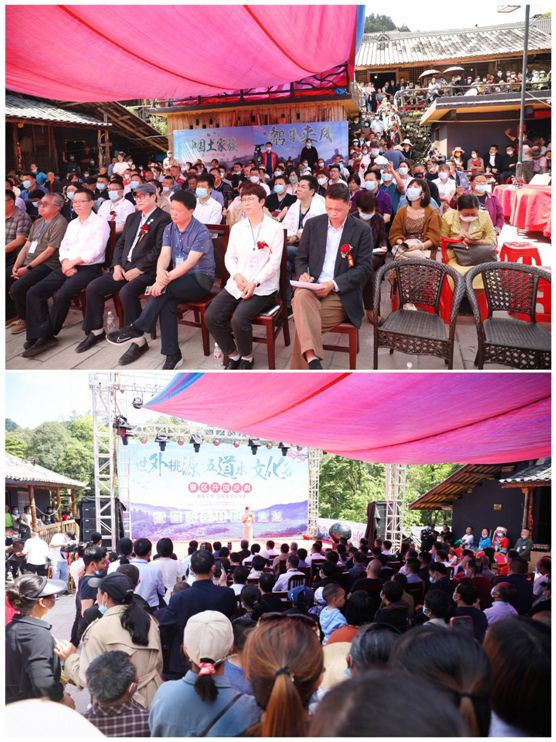 现场宾客云集,当地特色文化表演连绵不绝,这是世外桃源五道水文化谷景区对各位到场嘉宾支持的感恩。在欣赏歌舞表演后,开园庆典进入产业融合发展座谈会和乡村振兴共享共创分享环节。
