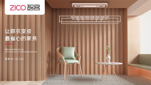 ZICO智客始终遵循苛刻严谨的锻造细节、精益求精的研发态度,其产品具备了安全、环保、功能强大、外观时尚等产品特色,有效解决家居晾衣空间狭小、阴雨天气不干、晾晒劳务繁重等晾衣历史难题,全方位满足广大用户的需求。