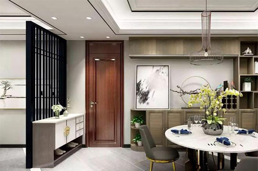 如果是新中式风格,还可以利用屏风替代隔断柜,镂空屏风,若隐若现,美观的同时也不影响室内的采光。
