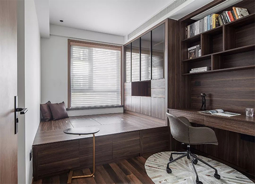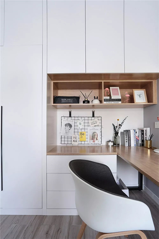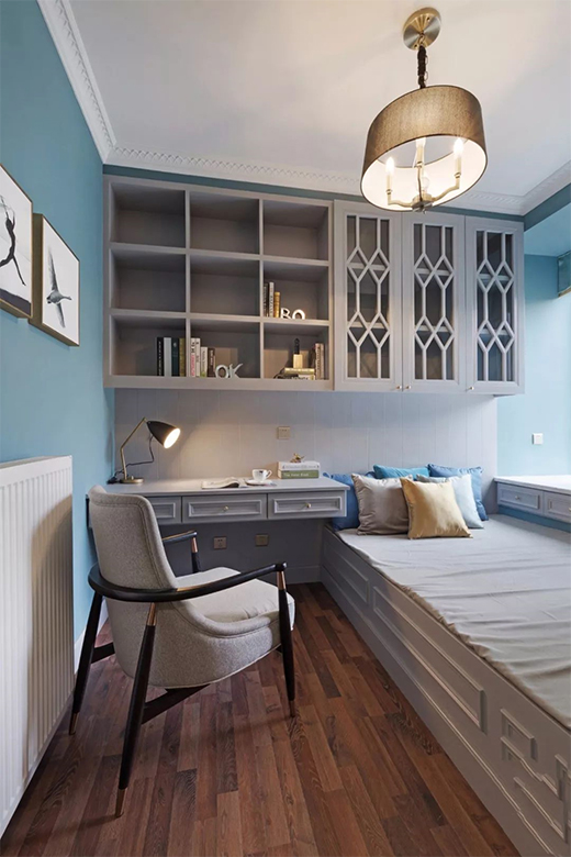 在当下的刚需户型中,几乎所有人家的房子里,都会有一个不大不小的“房间”,完全用来做书房的话,偶尔来了客人住家里又没个床,而完全用来做客房的话,使用率不高又觉得浪费了,利用起来非常的尴尬!这个时候就可以通过定制家具的设计,把书桌与床或收纳柜组合的设计,让小空间实现大利用的可能。