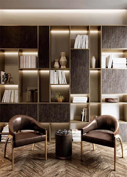 金属和玻璃质地的给人感觉比较现代时尚;深色的全铝书柜则显得厚重沉稳,比较有内涵;浅色的全铝书柜给人清新、自然、明朗之感,也比较容易搭配;深色的书柜则更有安静、厚重之感,比较凸显文化氛围。