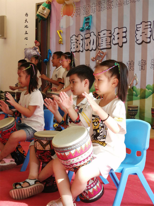学习非洲鼓可以说是幼儿音乐启蒙路上的“必经之处”,孩子们可以在学习非洲鼓的过程中体验神秘、独特的非洲文化,感受世界上最“原始”的声音。演奏非洲鼓的过程能够增强孩子们的四肢与头脑的协调能力,激发对于创意的思考,让孩子的身心在练习和演奏与热汗洒落当中得到锻炼。