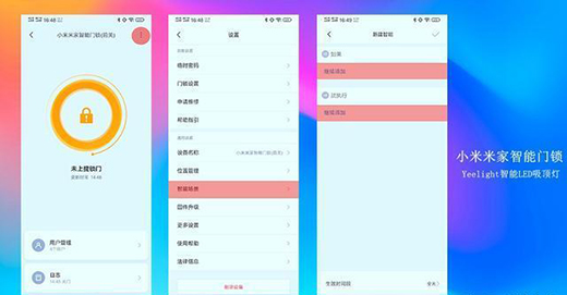 可能大家会说为什么要设置16:00,其实如果夏天还可以往后比如20:00,但目前是冬天黑天时间比较早,所以大家可根据所在地具体的黑天时间进行设置。相信大家已经对于这个设置比较感兴趣了,下面车车就简单讲解一下,如何通过米家APP进行小米米家智能门锁与 Yeelight灵犀吸顶灯以及Yeelight智能LED吸顶灯联动设置。