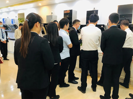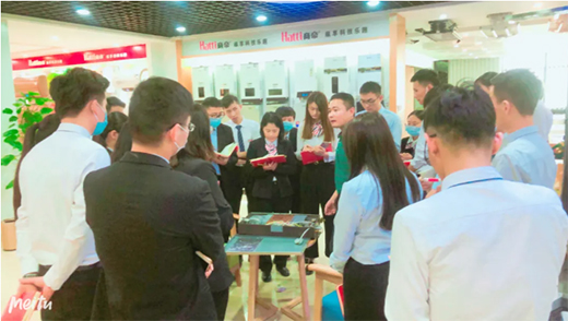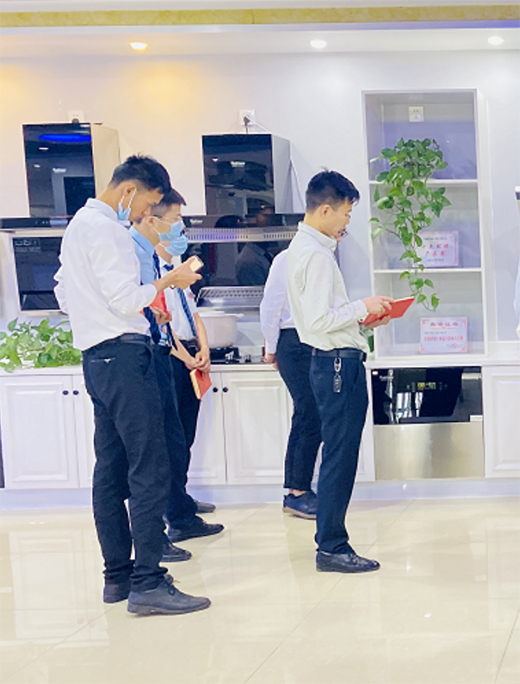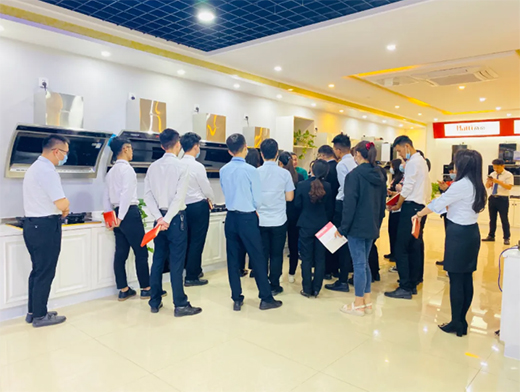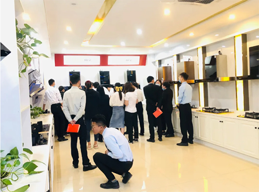 技术工程师对员工进行灶具产品的知识培训,不仅清晰了员工对于产品的认知,也更直观的去帮助员工了解了产品的材质、特性。