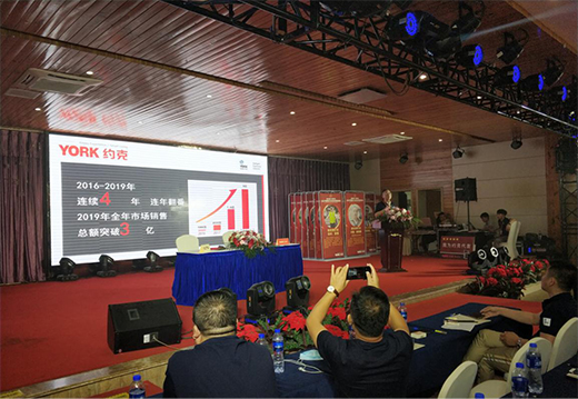 会议现场,YORK约克董事长韩海波先生在热情的掌声伴奏下,上台致欢迎辞并围绕“YORK约克的发展规划与品牌推广”发表重要讲话。YORK约克总部感恩各位分销商家人们一直以来对约克的信任与支持,让彼此能以情同手足的合作关系共同创下了众多的优异市场成绩,让YORK约克成为了如今在市场中耀眼夺目的存在。YORK约克也承诺定不负各位分销商的期望,用心做研发、细心做生产、诚心做服务、精心做推广、决心做发展,愿秉承最高的热情与最佳的工作态度,与各位分销商家人们继续并肩作战,同舟共济,共同创造更为灿烂的未来!