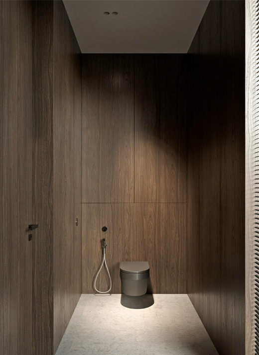黑色冷寂风重视精致、设计感、科技感强的工艺饰品,室内陈列的体量虽不大,但对调节空间色彩,丰富空间层次,烘托氛围能起到画龙点睛的作用。尤其是浴室内精致的日用品,对于讲究质感的人来说尤其如此。