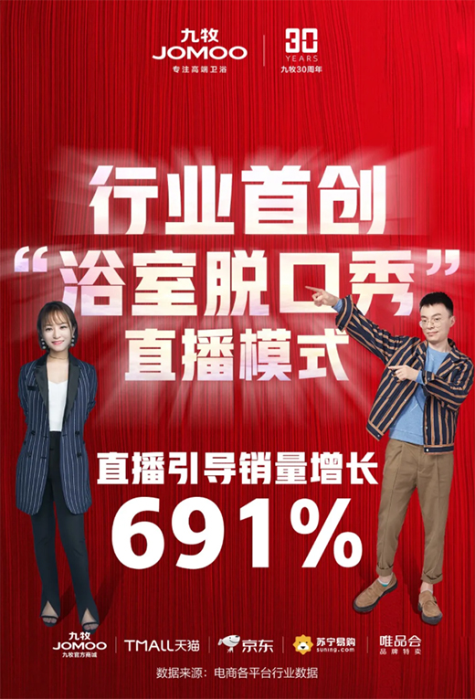 九牧坚持为用户提供优质的产品,优质的服务。发哥的店销售2.3个亿,九牧行业率先实现正增长;618活动期间,九牧全网首创浴室脱口秀,“脱口秀最红CP”思文、程璐加盟助阵,让年轻消费力量更加贴近和热爱国货!