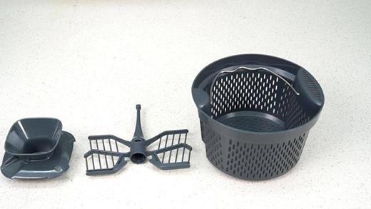 底部是主锅与电机的连接区域,特有五孔插座,而且在插孔上还做了防水设计,也大大提升了使用中的安全等级,五星孔则是电机与刀头的连接位置,最后边缘区域的则是出水孔,一般用于日常使用中不小心渗出水的排水口之类的。整个布局设计合理,在安全防护方面确实看出下了不少心思;另外就是刀头的替换方面,确实设计也比较人性化,主锅底部塑料壳旋转卸下来以后,就能通过旋转方式将刀头拆卸下来,进行更换或者清洗了,很方便,无需借助其他辅助工具。