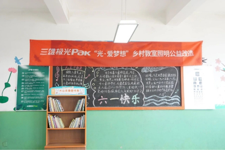 除了一直不遗余力紧跟国家环保战略、深耕健康照明领域,三雄极光更是多年来以“光爱梦想”的名义出发,将教育扶贫作为自身主动服务国家战略需求、积极履行社会责任的一项重要工作,先后走入全国多个贫穷山区学校进行教室照明公益改造,为当地学子创造舒适的学校环境。