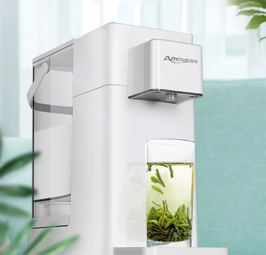 A:亚摩斯即热式饮水机的水箱采用食品级材质,2.2L非常便携,容量也能满足日常所需。