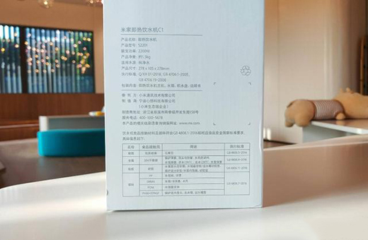 包装侧边是米家即热饮水机C1的基本参数,产品由宁波心想科技有限公司代工,其实在小米有品上已经有多款心想科技的饮水机产品,从用户反馈来看,口碑都还不错,这估计也是小米看中心想科技最重要的原因之一了。