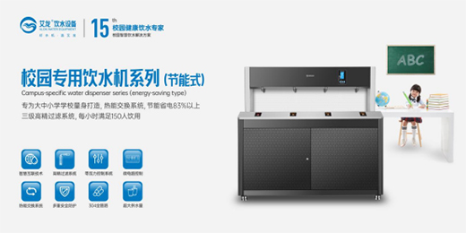 作为净水行业的标杆企业,艾龙饮水设备根据校园饮水需求推出智慧校园解决方案,助力解决校园净水难题,打造校园安全、健康饮水新环境。针对校园饮水,推出了幼儿园饮用水机、节能式饮水机两大系列。
