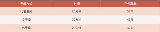 我们打开测试间花洒,连续出水10分钟,模拟人日常洗澡的效果,经过10分钟的出水,室内环境湿度高达78%。之后我们对“凉干燥”、“热干燥”功能进行了测试。最终得到了3组数据。