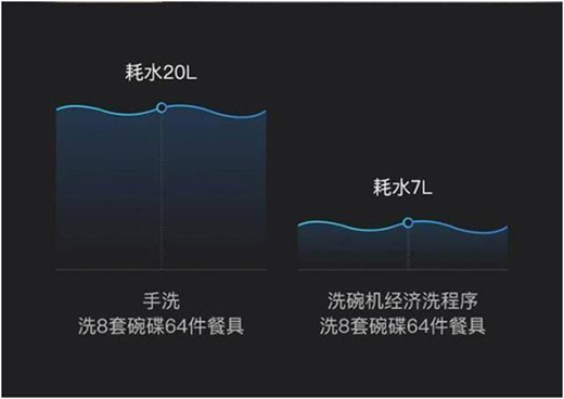 最后,云米洗碗机比普通洗碗机更节能。经过多次实验评估,在经济洗模式下,云米洗碗机满载64件餐具运作,也仅耗水7L,相当于3瓶大升可乐的量,而在快速洗涤模式下,机洗用时仅耗28分钟。另外,手机APP也能预约峰谷电,半夜洗碗更省钱。