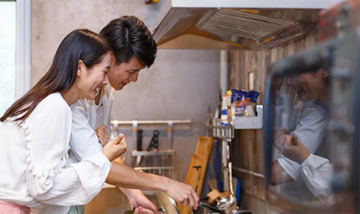 是料理一日三餐时,她炒菜,他洗菜,两人在厨房里嬉笑打闹;是两人对坐吃饭时,她把不喜欢的菜扔进他的碗里;是吃完饭后,他主动干起饭后的组合动作(收拾餐桌、洗碗整理、擦拭灶台),把爱在生活中说的淋漓尽致。