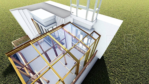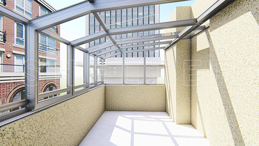 用钢化中空玻璃来做阳光房的面板,可以保证室内暖气不易流失,起到夏天隔热、冬天保暖的作用。