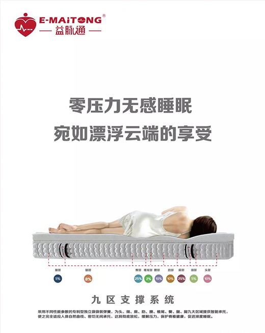 “人睡不坏一张好床垫,但一张不好的床垫可以睡坏一个人”。益脉通智能健康床垫,在睡眠中帮助我们修复身体,改善亚健康,让我们睡得舒服的同时更让我们睡得健康!