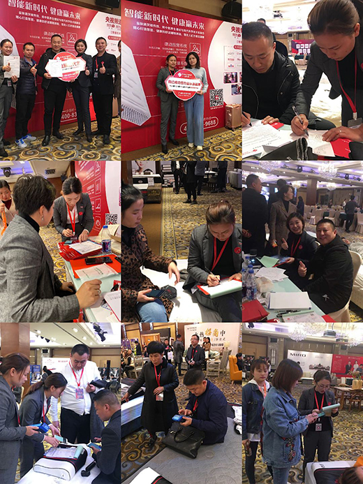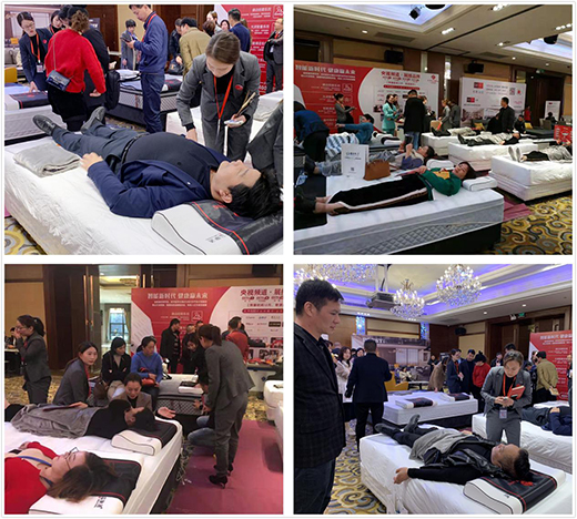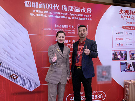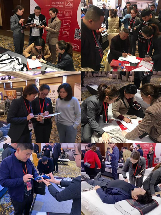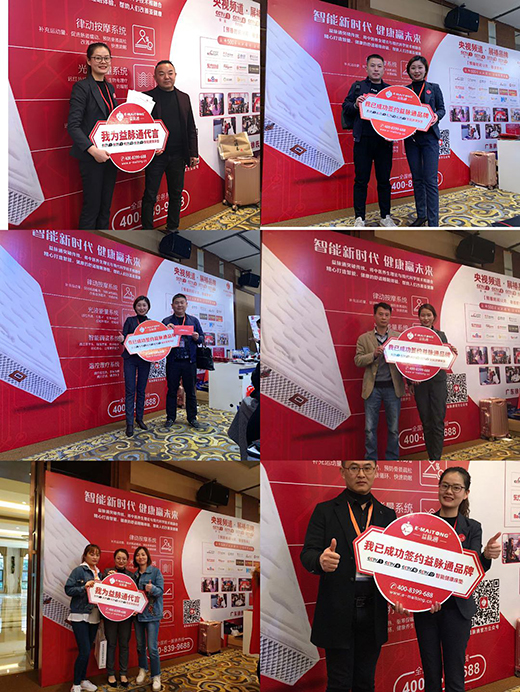 招商会现场,益脉通展位人头攒动,益脉通核心专利产品“律动按摩床垫”和“温控艾灸理疗床垫”吸引了数百名经销商客户的了解和体验,受到了广大家居经销商的认可和赞许!凭借益脉通独特的产品优势、品牌优势、营销管理优势及多渠道合作模式,益脉通品牌吸引了数百人体验床垫产品,以及数十家家居行业经销商的签约加盟。