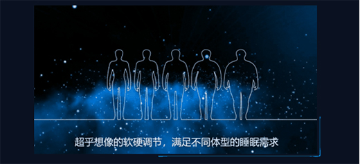随身而变,自动感知人体体型,即时调节软硬度,两分钟内调节到最合适睡感。