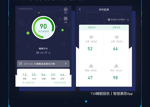通过领先的侦测技术,慕思T10智能床垫能多维度采集睡眠信息,从而得出睡眠分析报告,让用户时刻关注自己与亲人的睡眠健康,为用户提供最佳的睡眠改善方案,真正实现睡眠问题的发现与改善。