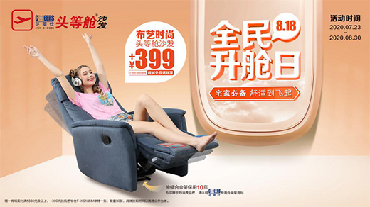 与慕思全球睡眠文化之旅等品牌IP有异曲同工之妙的还有芝华仕的“全民升舱日”,在2020年7月23日至8月18日期间,第六届芝华仕“全民升舱日”品牌狂欢节如约而至。自2015年首届“818全民升舱日”成功举办后,芝华仕通过每年的“全民升舱日”品牌活动,让消费者体验芝华仕头等舱所带来的舒适品质体验,“以经济舱的价格享受头等舱的服务”。还有作为曼联全球官方合作伙伴,梦百合开启以曼联为主题的“圆梦红魔”活动。“圆梦红魔”活动目前已持续三年,2020年的活动亮点之一是梦百合传奇7号系列产品买一送一,希望消费者可以使用专为球员打造的床垫,缓解身体压力,提高睡眠质量。