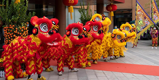 伴随着阵阵鼓声,精彩的舞狮节目正式开始。六头灵巧活泼的“雄狮”在锣鼓声中进行了上凳表演、桩阵表演、高杆表演等,走钢丝、腾空跳等高难度动作轻松完成,引得一片掌声与欢笑声。