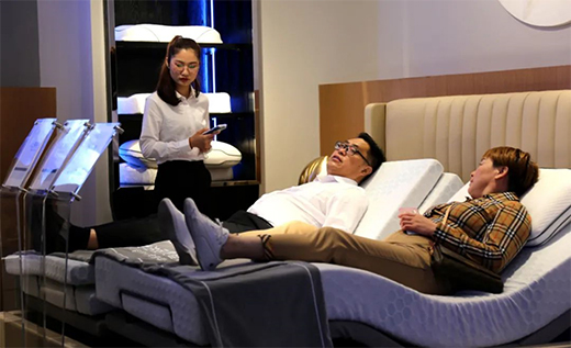 如果您的伴侣时常夜晚辗转反侧,我们推荐您尽量选择静音抗干扰、尺寸较大的床及床垫。
