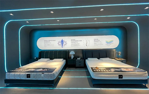 除了产品实力过硬,为了满足更多消费者的需求,相比以往单纯布局床垫产品,卡8家居还打造了综合式时尚睡眠空间体验,通过搭配整套成形的卧室空间产品,覆盖不同的睡眠生活场景,以多种空间搭配方案来增强客群匹配度。同时通过研发、制造、运营等8大优势赋能经销商,全力提升经销商终端门店的整体竞争力。